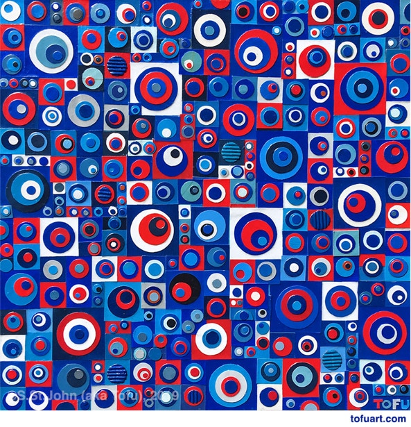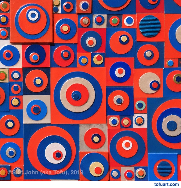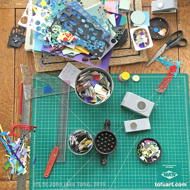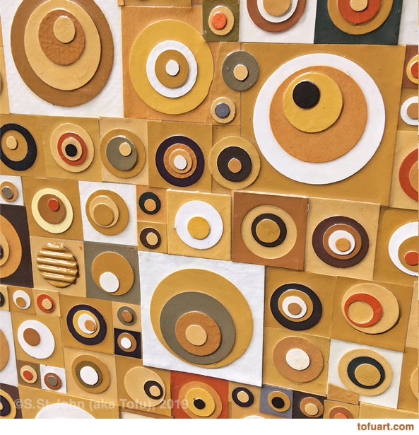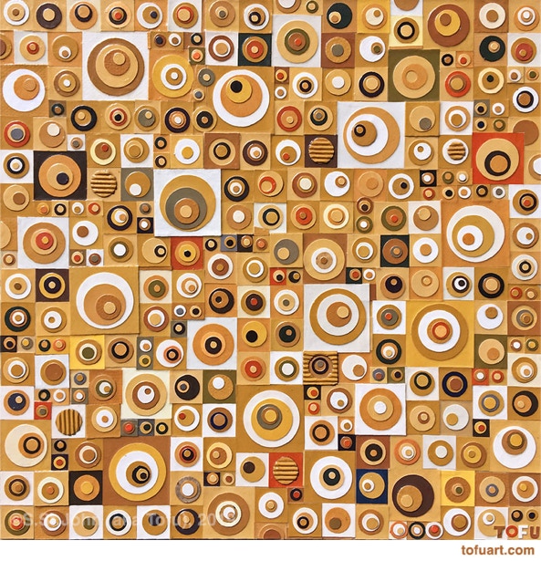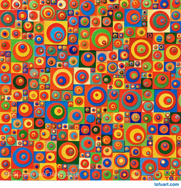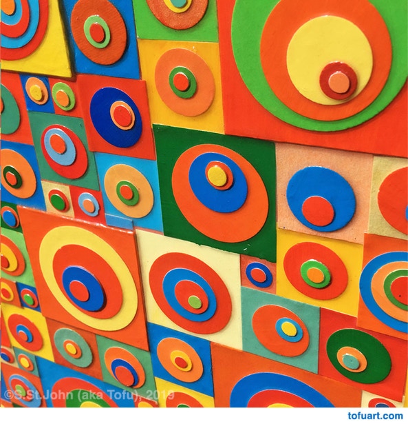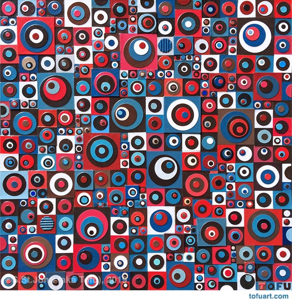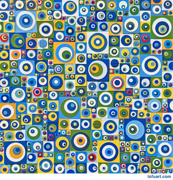 Collage made from hand-painted paper that is cut and reconfigured into new patterns. The color choices are inspired by traditional Kashubian and Polish folk art and other travels.