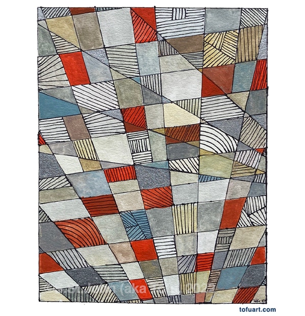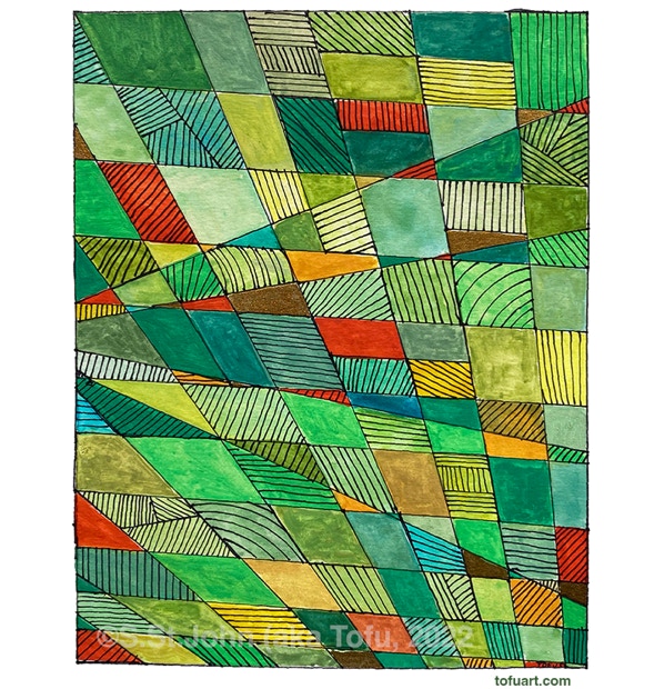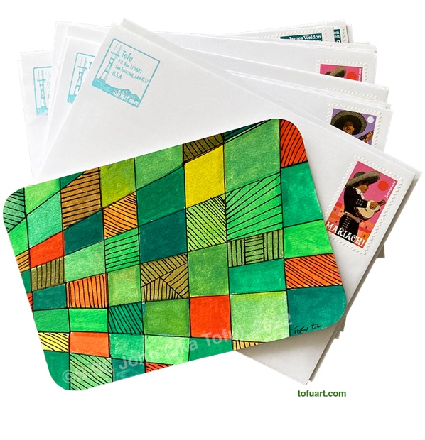 The work has its origins in a series of mail art pieces I made while being inspired by my tropical view on a 2022 visit to Mexico.